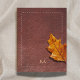 🍂 This leather-look notebook features a dried leaf set against a richly textured background, framed with subtle stitched detailing inspired by traditional bookbinding. The stitched border adds a sense of craftsmanship and quiet structure, giving the notebook the feel of a well-made keepsake rather than a mass-produced item.