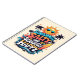 Front and center is the funky, feel-good quote, wrapped in sunny beach elements: a cool cartoon sun rocking shades, swaying palm trees, vintage surfboard, rolling ocean waves, and cheerful tropical accents like starfish and hibiscus blooms. It’s a whole summer mood — radiating happiness, heat, and high tides.
