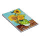Sunflowers (1888) Vincent van Gogh. Encore la vie sur un arrière - plan bleu. Un bouquet de tournesols lumineux trône dans un vase. Reproduction d'oeuvres d'art célèbres dans le domaine public.