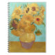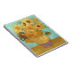 Sunflowers (1889) Vincent van Gogh. Encore la vie sur un arrière - plan bleu. Un bouquet de tournesols lumineux trône dans un vase. Reproduction d'oeuvres d'art célèbres dans le domaine public.