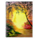 Peinture d'une forêt avec la lumière du soleil à la tête du sentier.