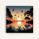 A stunning sunset scene over a peaceful lake, with flying birds and silhouetted trees creating a calm and reflective mood. Perfect for home décor and nature lovers alike