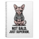 This clean cartoon-style illustration features a confident sphynx cat with pink skin, wearing a gray hoodie and an eyepatch, seated in a calm, composed pose. The limited color palette and crisp vector lines create a bold, modern look with strong visual focus. The phrase “Not Bald. Just Superior.” adds sharp, sarcastic humor, making this design ideal for fans of edgy cat art, meme culture, and confident, minimalist aesthetics.