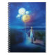 Design artistique Extraordinaire d'un ciel étoilé. Une petite fille aux pigtails dorés marche avec une vieille valise d'une main et des ballons brillants de l'autre. Chacun des ballons représente une planète distincte dans le système solaire. C'est une image montrant l'avenir de cette petite fille qui regarde vers l'avenir où elle va.