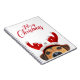 Illustration d'un animal de Noël mignon avec un chien curieux portant un bandeau de rennes. Salutation saisonnière écrite en lettres de typographie moderne.