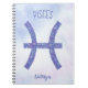 Ce joli carnet de Pisces de lavande et de violet personnalisé présente votre signe astrologique du Zodiac dans un beau éclat comme les constellations. Customisez ce cadeau d'astrologie mignon avec votre nom en écriture cursive pour quelqu'un qui a un anniversaire fin février ou début mars.