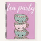 Carnet mignon rose girly tendance avec message "Tea party" et teacups illustrés.