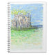 L'illustration d'une scène côtière thaïlandaise est illustrée par des traits lâche et expressifs, montrant un affleurement rocheux et la rencontre de la terre et de la mer sous un ciel bleu. Une végétation discrète s'installe au-dessus des rochers, ajoutant des touches de vert aux tons principalement bleu, vert et beige.