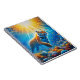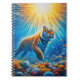The image features a spiral notebook that showcases a painting of a tiger swimming underwater. The artwork highlights two types of tigers: the Siberian and Bengal tiger, both known as big cats. The notebook combines elements of art and wildlife, focusing on the beauty of these magnificent mammals.
