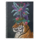 Hot House Tiger 2 par Fab Funky. Un tigre repose avec des fleurs tropicales et de la verdure au-dessus de sa tête comme une tête.| 192437GG