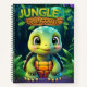 Personalize the back cover of this adorable "Jungle Welcome" notebook! Featuring a unique whimsical baby box turtle cartoon graphic animal character in a lush nighttime enchanted forest scene, inviting you into a world of imagination and creativity. This design is perfect for tortoise lovers, woodland safari nature wildlife fans, and anyone who enjoys cute, cozy zoo vibes.