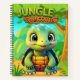 Personalize the back cover of this adorable "Jungle Welcome" notebook! Featuring a unique whimsical baby box turtle cartoon graphic animal character in a lush forest scene, inviting you into a world of imagination and creativity. This design is perfect for tortoise lovers, safari woodland, nature wildlife fans, and anyone who enjoys cute, cozy zoo vibes.