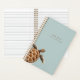 Un carnet moderne décoré sur le thème de la mer avec une aquarelle illustrant une tortue de mer sur un arrière - plan vert de mer. Personnalisez avec votre nom en police serif brune. Idéal pour les amateurs de vie marine