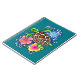 Dessin original de Sandra Gale d'une tortue de mer tropicale nageant sur une vague d'eau bleue, au-dessus de deux fleurs colorées d'hibiscus. Un design idéal pour les surfeurs, les amateurs de plage, les défenseurs de la nature ou toute personne qui apprécie ces créatures tranquilles, douces et uniques qui nagent continuellement dans les immenses océans pendant des années et des années.