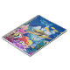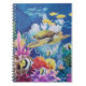 Peinture en soie d'une tortue verte et d'amis. Petits poissons dorés, poissons anges et autres se partagent la mer avec des algues et des coraux colorés.