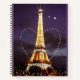 Pour les amoureux de Paris, Paris est toujours une bonne idée. Midnight in Paris présente une tour eiffel romantique au coeur scintillant. Ce bloc-notes bleu violet va jazz votre espace de travail. Illustration de paris plus magique sur le dos. Journal parisien romantique par judithchengart