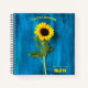 Un joli cahier de tournesol avec votre monogramme dans une police moderne avec l'image d'une image de tournesol vibrante sur un arrière - plan peint en bleu vif.