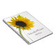 Customisez le joli Tournesol Jaune sur le Carnet Spiral Mariage Blanc avec les noms personnels de la mariée et du marié et leur date de cérémonie de mariage d'été ou d'automne pour créer un de l'un d'un planificateur, livre d'or livre de conseils. Ce chic livre de notes nuptiales à fleurs customisées présente une photo florale d'une fleur de tournesol jaune sur la tige dans un vase en verre avec un arrière - plan blanc éclatant.