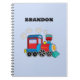 Bleu, train, transport, locomotive, véhicule, cahier pour enfants. Personnalisé, Enfants, Nom, cahier bleu acier pour garçons. Personnalisez-le avec le nom de votre enfant.