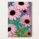 Ce cahier élégant et magnifique présente un fond bleu avec de grandes marguerites roses et violettes. Personnalisez la citation et le nom personnalisé en utilisant le mode édition.