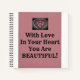 Tu Es Belle ! est une inspiration stupéfiante qui nous rappelle que la beauté se trouve dans tout l'amour ! Ce bloc-notes design a un rose avec un arrière - plan blanc et un coeur fleuri au-dessus !