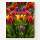 Cette belle conception présente une image haute définition de tulipes dans différentes nuances lumineuses de rouge, violet et jaune. A l'origine, les tulipes étaient devenues sauvages en Asie Centrale et étaient considérées comme un symbole de l'Empire Ottoman. Cependant, au XVIe siècle, elles furent importées en Europe et devinrent bientôt très prisées comme une marchandise précieuse. Ils se sont associés à la Pays-Bas, où de nombreuses fleurs ont été cultivées et échangées sur les marchés. Beaucoup de beaux hybrides et cultivars, dans toutes sortes de couleurs merveilleuses, ont été élevés depuis.