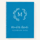 Vibrant attrapant les yeux Turquoise Bleu Personnalisé Monogramme Carnet... Sur un arrière - plan de bleu turquoise vif, votre première couronne botanique feuillue monogramme, nom, et titre de carnet se démarquent par une encre blanche et nette. Tout le texte peut être facilement révisé par vous sur le modèle de personnalisation.
