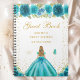 Cet élégant et glamour livre d'hôtes en sweet sixteen présente une belle princesse aux cheveux blonds et à la peau claire dans une robe turquoise bleue. Le texte combine écriture manuscrite et polices sans serif modernes pour un look élégant et sophistiqué. Les compositions florales, les papillons et les confettis d'or créent un mélange parfait de rustique et de chic. Graphiques par www.etsy.com/uk/shop/SunflowerDayLove