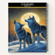 Deux loups majestueux hurlent gracieusement vers une lune pleine et rayonnante illuminant le paysage d'hiver serein NOTE Pour modifier Texte Utiliser l'outil de conception