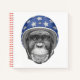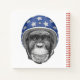 Ce dessin présente le portrait d'un chimpanzé dans un casque de moto patriotique.