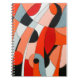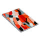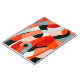Un tableau abstrait aux formes arrondies noir, blanc et rouge.