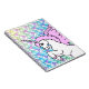 Cute White Unicorn avec cheveux roses et ailes avec un motif de Unicorn arrière - plan en bleu dégradé. Entièrement personnalisable. Le Big Unicorn peut être déplacé et redimensionné.