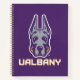 Le logo de la mascotte de l'Université d'Albany Great Dane présente une représentation stylisée de la tête d'un grand Danois. Le chien est illustré de lignes vives et audacieuses en violet et gris, lui donnant une expression féroce et confiante. Les oreilles sont hautes, symbolisant la vigilance et la force. Sous la tête du Grand Danois se trouve le mot "UAlbany" écrit en caractères d'or gras et bloquants, surligné de violet, renforçant l'image de marque de l'université. Cette conception représente les équipes sportives d'UAlbany, mettant en avant le pouvoir, la loyauté et la détermination.