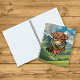 Caricature de vache de Highland portant le foulard de tartan de chasse de Bruce. Paysage arrière - plan personnalisé sur les deux couvertures. Texte personnalisé.