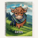 Caricature de vache de Highland portant le foulard de Gordon tartan. Paysage arrière - plan personnalisé sur les deux couvertures. Texte personnalisé.