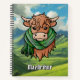 Caricature de vache de Highland portant foulard tartan MacArthur. Paysage arrière - plan personnalisé sur les deux couvertures. Texte personnalisé.