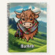 Caricature de vache de Highland portant foulard tartan de MacBeth. Paysage arrière - plan personnalisé sur les deux couvertures. Texte personnalisé.