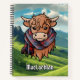 Caricature de vache de Highland portant foulard tartan MacLachlan. Paysage arrière - plan personnalisé sur les deux couvertures. Texte personnalisé.