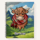 Caricature de vache de Highland portant le foulard tartan rouge de Morrison. Paysage arrière - plan personnalisé sur les deux couvertures. Texte personnalisé.