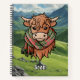 Dessin de la vache Highland portant le foulard de Scott tartan rouge. Paysage arrière - plan personnalisé sur les deux couvertures. Texte personnalisé.