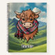 Caricature de vache de Highland portant le foulard de tartan rouge Sinclair. Paysage arrière - plan personnalisé sur les deux couvertures. Texte personnalisé.