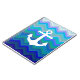 Silhouette blanche simple simple d'ancre sur un arrière - plan onduleux orienté de la belle eau se composant de différentes nuances et teintes de bleu.