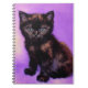 Carnet avec un chat de style Van Gogh avec un arrière - plan violet. Ce chaton noir regarde adorablement le spectateur ! Un grand cadeau pour les amoureux de les chats et les collectionneurs d'art hollandais !