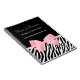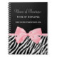 Un carnet chic et élégant des employés de boutique d'impression de zèbre avec un ruban rose girly mou attaché dans un arc mignon. Personnalisez ce carnet noir et blanc à la mode de poster de animal en ajoutant le nom de votre boutique d'affaires, de votre employé, et d'information de contact aux secteurs faits sur commande des textes. Image imprimée d'appartement, ruban non réel. Une partie d'un ensemble à la mode de boutique.
