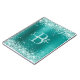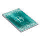 Le monogramme calligraphique en bleu sarcelle pâle et blanc au centre peut être personnalisé.