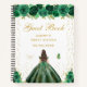 Cet élégant et glamour livre d'hôtes en sweet sixteen présente une belle princesse aux cheveux brunes et à la peau claire dans une robe de boule verte. Le texte combine écriture manuscrite et polices sans serif modernes pour un look élégant et sophistiqué. Les compositions florales, les papillons et les confettis d'or créent un mélange parfait de rustique et de chic. Graphiques par www.etsy.com/uk/shop/SunflowerDayLove