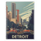 Ce carnet sur le thème de Détroit présente une illustration de style vintage d'une scène de rue classique, mettant en valeur l'architecture emblématique et le patrimoine automobile de la ville. L'art de la couverture capture le charme du milieu du siècle de Détroit avec des voitures classiques qui sillonnent une rue animée. Ce carnet en spirale est un cadeau parfait pour les voyageurs, les amateurs de voiture, ou toute personne qui apprécie l'intemporelle et rétro de la ville automobile.