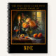 Un carnet avec une illustration vintage de la vie morte d'un verre de vin avec des pivoines et des pêches. Parfait pour les notes de dégustation de vin ou d'autres sujets liés au vin.