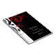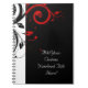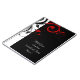 Arrière - plan noir avec logiciel de design à rotation inverse blanc et rouge. Grand comme un souvenir mariage à garder, ou une faveur pour la fête de mariage, parents ou invités spéciaux. Arrière - plan noir avec des vignes blanches modernes et des tourbillons dans un style design contemporain et élégant. Tous les Designs Copyright © www.CustomInvitesOnline.com.