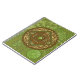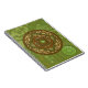 Ce mandala sur le thème de la Virgo présente une pierre péridote entourée du symbole du signe, de la constellation et du symbole alchimique de la Terre parmi les fibres et les tissages.